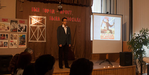 Актовый зал, благодаря стараниям наших учителей и учеников, превратился в настоящую машину времени. Казалось, что мы ясно и отчетливо видим сквозь плотную ткань десятилетий события далекого военного времени, чувствуем боль и горечь тех, кому довелось пережить страшное блокадное время.