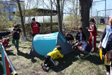 Получив маршрутные листы, мы отправились на Тропу викингов. Здесь предстояло отыскать сокровища свеев, преодолеть полосу препятствий, быстро развести костёр, установить палатку, правильно собрать рюкзак, пройти сложную эстафету. Все показали себя с самой лучшей стороны. Однако переходящий кубок «Победителю игры «Парк шведского периода» завоевала только одна команда – «Весенние феи» – во главе с командиром Фадеевым Дмитрием.