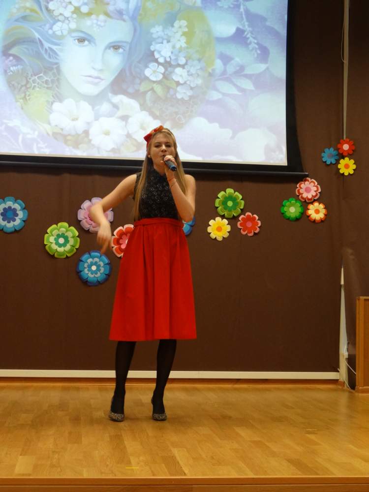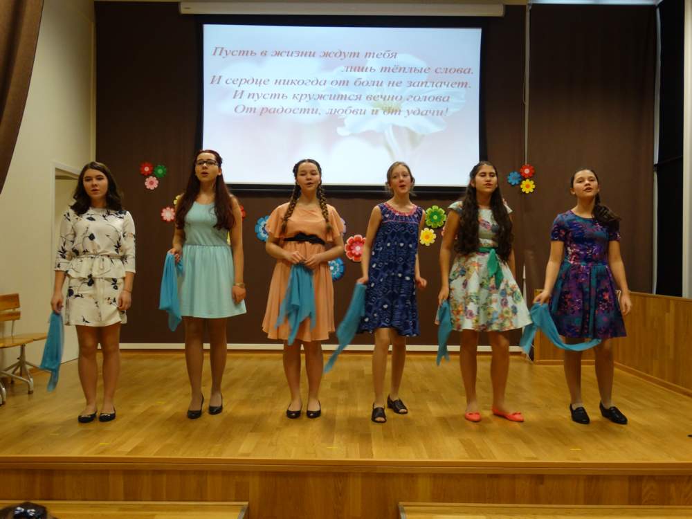 7-го марта учащиеся школы поздравили собравшихся в актовом зале мам, бабушек, учительниц и девочек-одноклассниц. Танцы, песни, стихи, инсценировки – всё для Вас, дорогие женщины! В концерте участвовали ученики 1-11 классов. Особенным успехом пользовались номера, подготовленные юношами-старшеклассниками. Порадовали и растрогали до слёз зрителей стихи и песни для мамы и бабушки в исполнении ребят младших классов.