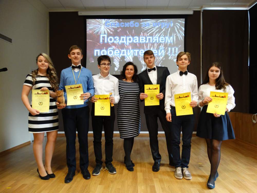 14 апреля состоялась интеллектуальная игра «Что? Где? Когда?», посвященная Году Экологии в России. Со счетом 6:4 победили знатоки. В составе команды – Анохин Игорь, 9 класс, Дрэгич Дан, 9 класс, Лымарь Дарья, 9 класс, Стуканова Елизавета, 10 класс, Алексеенков Дмитрий, 11 класс и капитан команды Китаев Борис, 10 класс. Поздравляем!