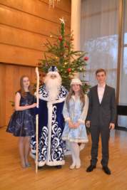 В нашей школе сказочные новогодние мероприятия проходили 26 декабря. На большой сцене Посольства состоялось театрализованное представление по пьесе-сказке Самуила Яковлевича Маршака «Двенадцать месяцев». В постановке приняли участие все ребята школы. А зрителями спектакля стали родители, учителя, гости, которые с интересом следили за приключениями капризной королевы, мудрого профессора, злой мачехи и ее дочери, доброй и отзывчивой падчерицы в гостях у двенадцати месяцев.