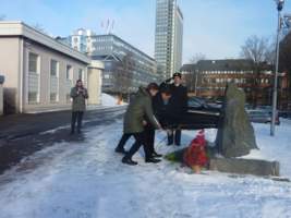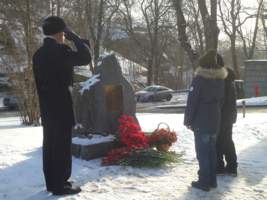- 22 февраля по традиции накануне Дня защитника Отечества у памятного камня на территории Посольства РФ в Швеции состоялся торжественный митинг, посвященныйэтому замечательному празднику. С Днем защитника Отечества поздравили всех присутствующих Посол РФ в Швеции Татаринцев В. И. и военный атташе Ермачков В. А.