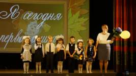 как обычно, торжественно и празднично: музыка, цветы, шары, белые банты и фартуки, улыбающиеся учителя,