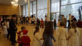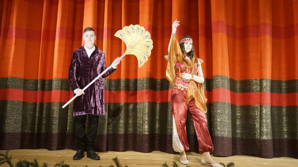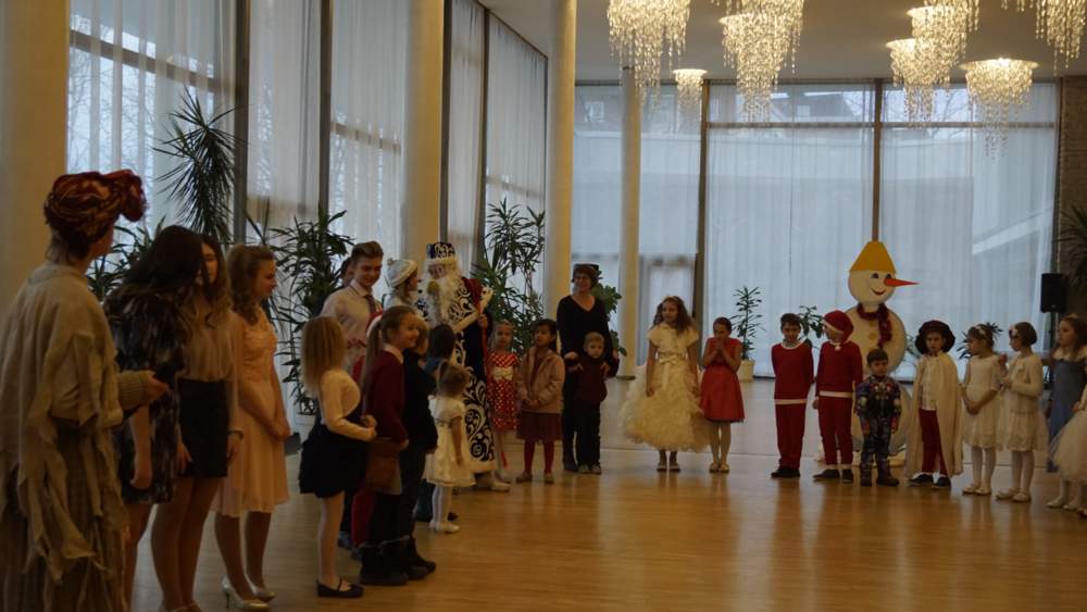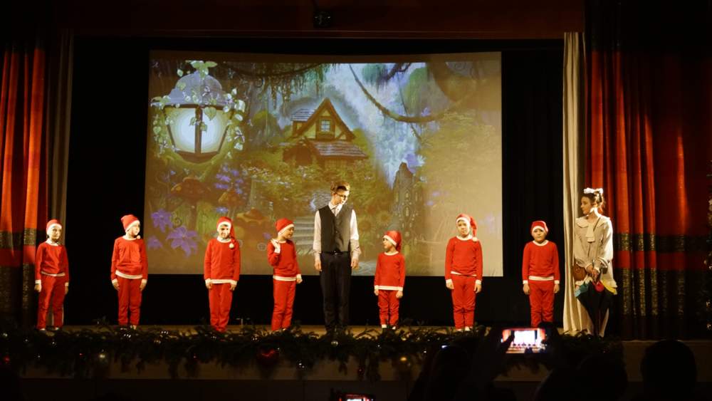 В нашей школе сказочные новогодние мероприятия проходили 27 декабря. На большой сцене Посольства состоялось музыкальное представление «Поиск новогодней песни, или Приключения Маши и Вити». В постановке приняли участие все ребята школы. А зрителями спектакля стали родители, учителя, гости, с интересом следившие за приключениями главных героев, которые побывали в гостях у Бабы Яги, Водяного, Шехерезады, Белоснежки с гномами, Кота Ученого, Золушки и короля с принцессой в поисках музыкальных нот.
