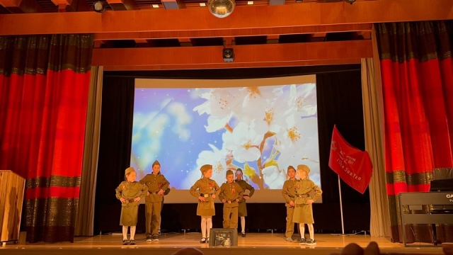 актовом зале школы учащиеся школы показали литературно-музыкальную композицию