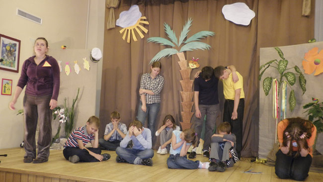 вкусный обед и сказка, в которой на этот раз команды поведали